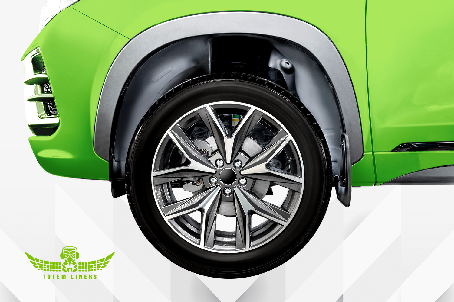 Четко повторяющие геометрию каждой модели автомобиля подкрылки обеспечивают защиту колесной арки от появления коррозии. Модельные подкрылки с шумоизоляцией устанавливаются с использованием штатных отверстий автомобиля. Подкрылки TOTEM LINERS являются дополнительным аксессуаром и устанавливаются поверх штатных подкрылков, не заменяя оригинальную деталь.