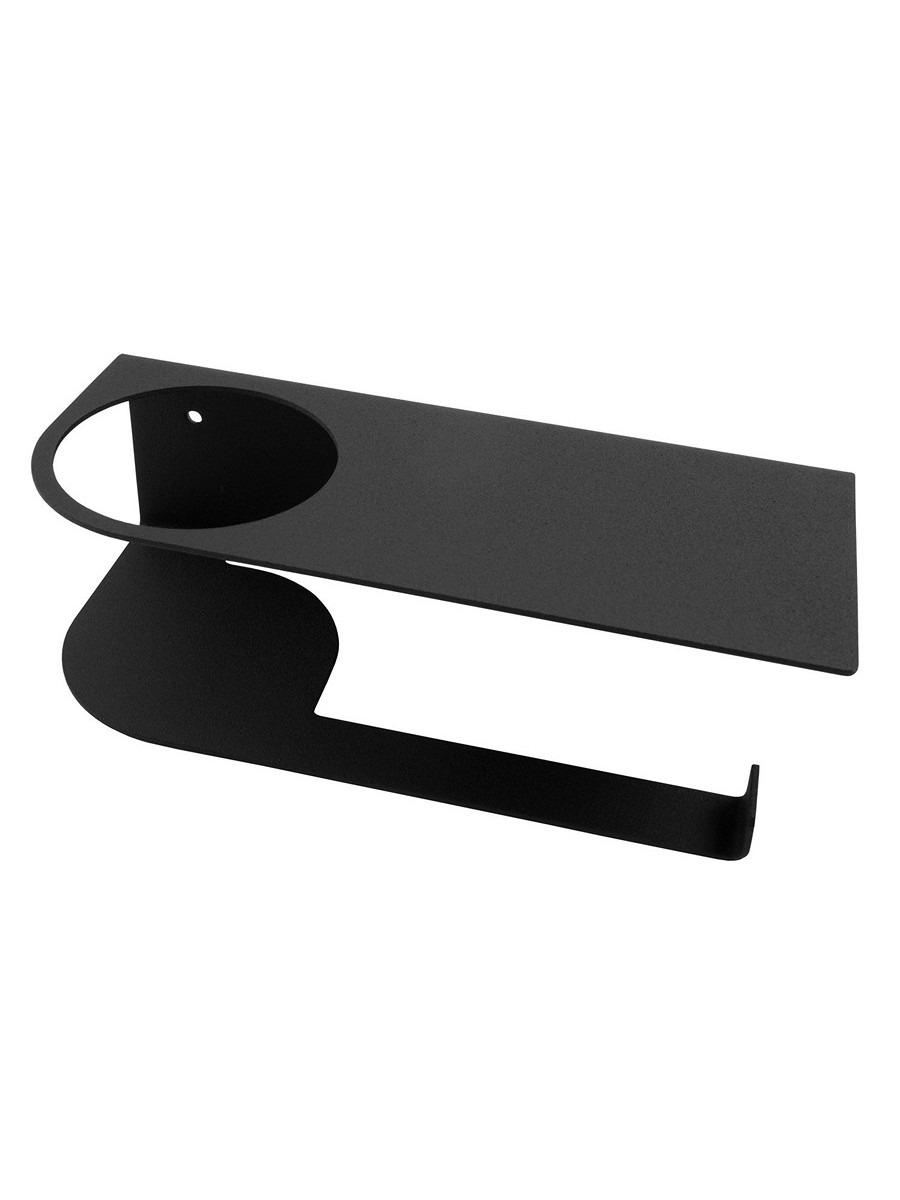 Держатель для туалетной бумаги с полочкой для телефона черный. Стильный аксессуар, который идеально впишется в любое пространство туалета или ванной комнаты. Полочку можно использовать как органайзер, это не только подставка для телефона, но и подставка под освежитель воздуха, полка для книжки или диффузора. Держатель туалетной бумаги изготовлен из высококачественной стали, покрыт плотным слоем матовой порошковой краски. В комплекте для установки 2 самореза и дюбели.
