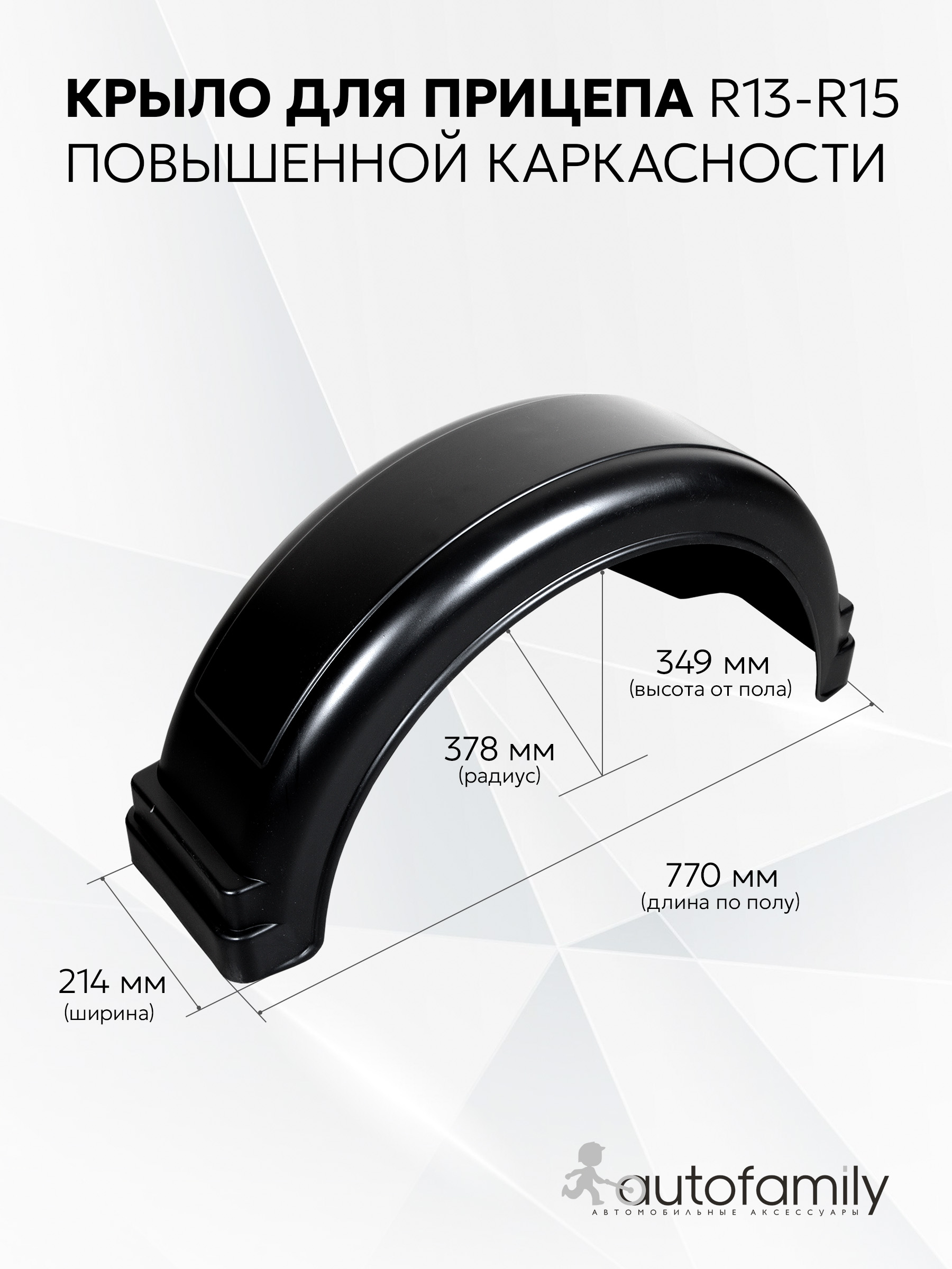 Универсальное литьевое крыло "Курган" с полузакрытой стенкой (подходит под размер колеса: 13", 14", 15") 770*349*214 мм